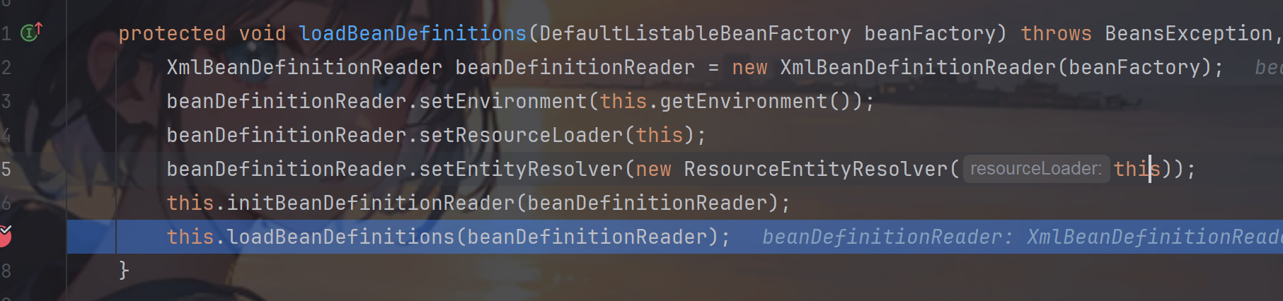 调用了refreshBeanFactory() 继续跟进,这里面调用了loadBeanDefinitions(beanFactory) 继续跟进