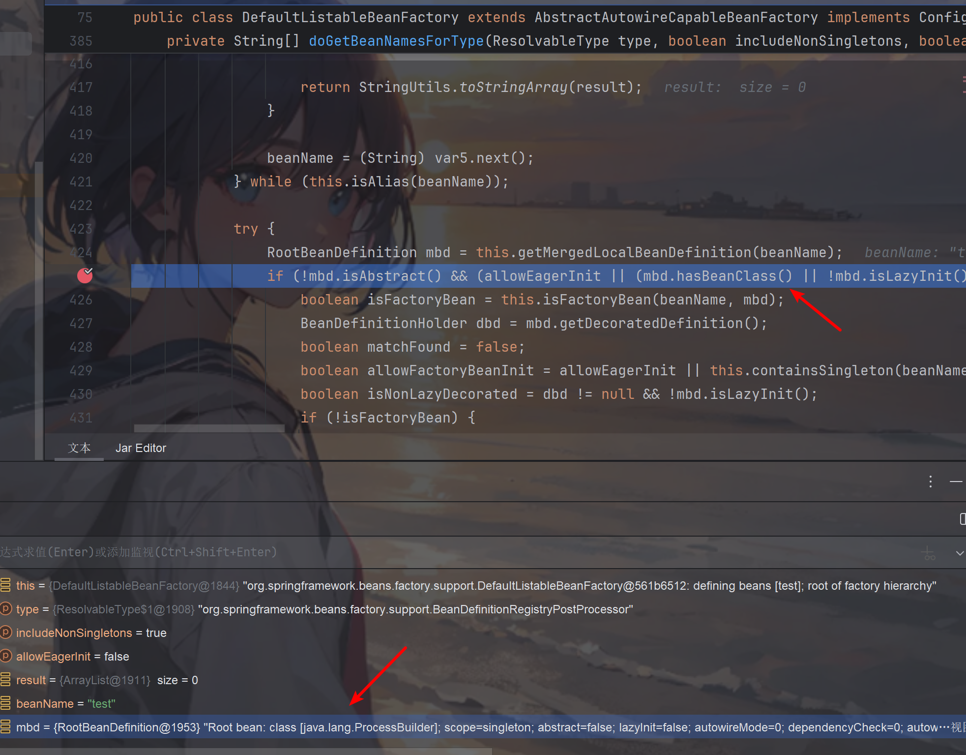 在doGetBeanNamesForType 获取到mbd的类为java.lang.ProcessBuilder