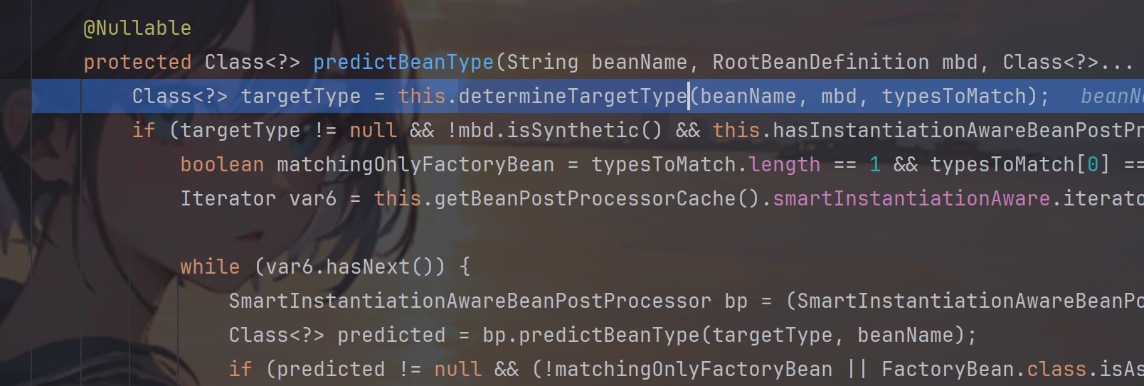 然后跟进isFactoryBean 调用了predictBeanType