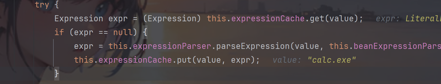 expr 获取到的值为java.lang.ProcessBuilder ,然后执行getValue 方法,参数为StandardEvaluationContext