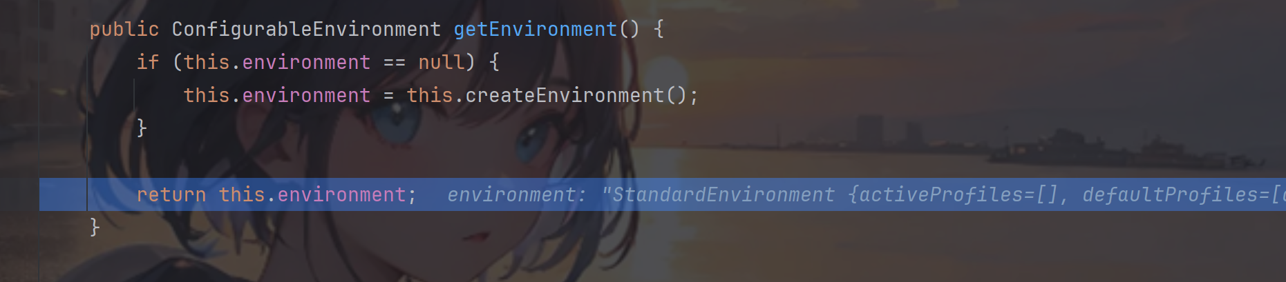 进入后跟进resolvePath 方法,然后进入getEnvironment 方法